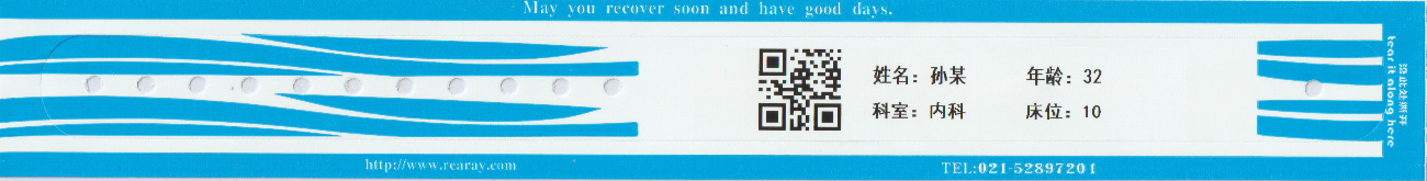 納米纖維材質(zhì),防水,防酒精,防轉(zhuǎn)移,抗菌防過敏,柔軟透氣,佩戴舒適,拉伸不變形,不斷裂。可打印數(shù)字、文字、條形碼、二維碼、圖片和圖形,與醫(yī)院HIS系統(tǒng)無縫銜接。